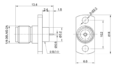 | 特性阻抗 | 50Ω | 內導體 | 插針 | 黃銅 | 鍍金 | |