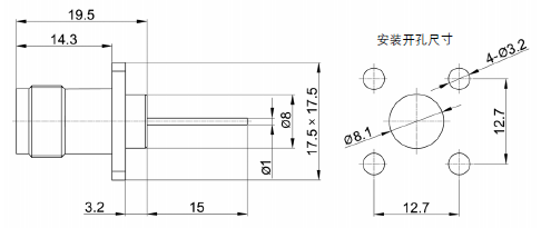 | 電壓駐波比 | ≤1.3 | 絕緣介質(zhì) | PTFE | |||